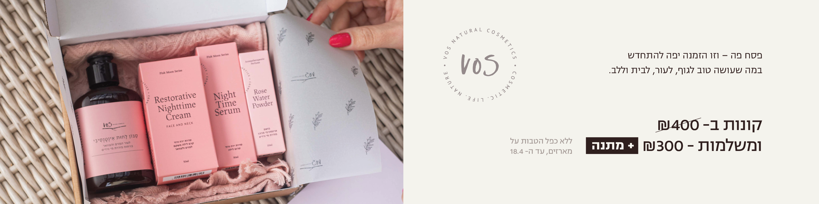 "כל מה שאתם צריכים לחופשה הבאה. מארז טיסה ממוצרי vos"