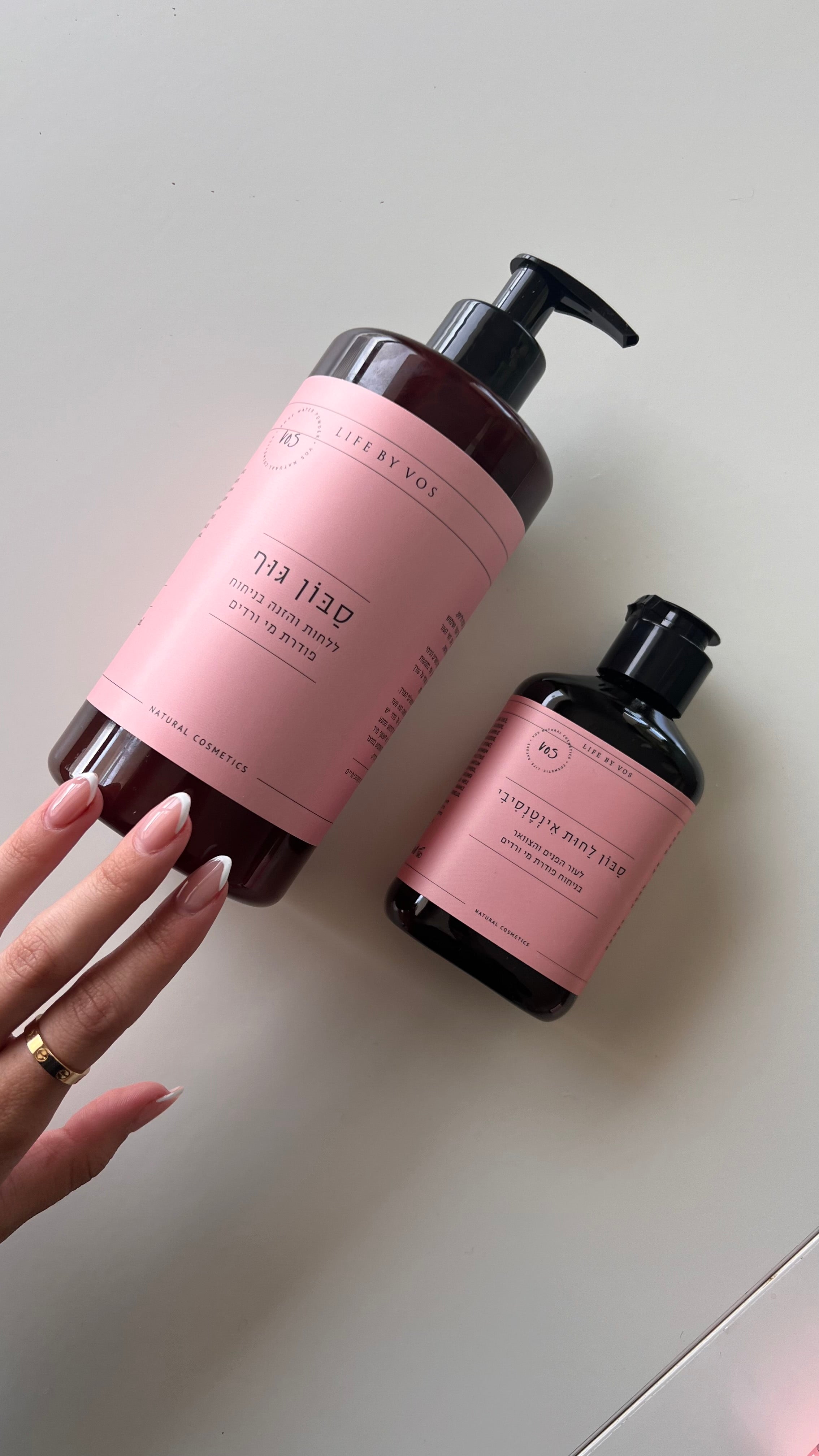 - העור שלך ראוי למגע שמזין, מנקה ומרגיע – בלי לפגוע באיזון הטבעי שלו. כי כשאת בוחרת בסבון גוף טבעי, את בוחרת בעצמך – כל יום, כל פעם מחדש.